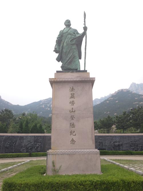 法显雕像:法显(公元337——422年)东晋山西襄垣人,早年出家为僧。东晋隆安三年(公园399年)由长安出发到印度取经,是中国历史上西行取经第一人。东晋义熙八年(公元412年)法显由海路归国在崂山登陆,在崂山译经传教一年,并将西行取经的经历和沿途见闻写成了《佛国记》。