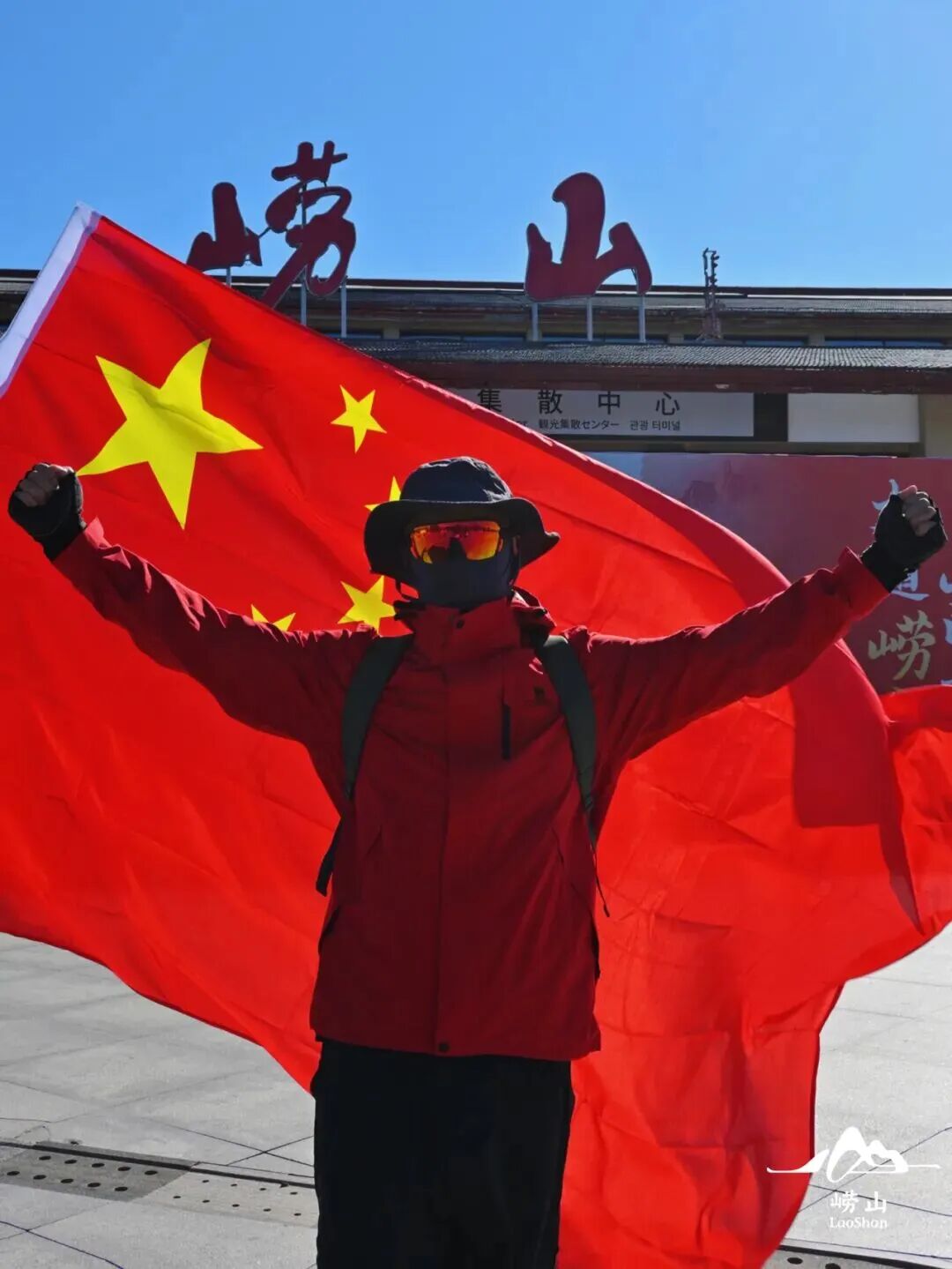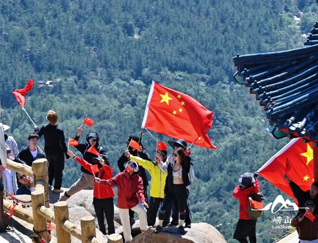为庆祝中华人民共和国成立76周年,在崂山巨峰游览区灵旗峰举办中国大陆海岸线最高峰升国旗仪式。
