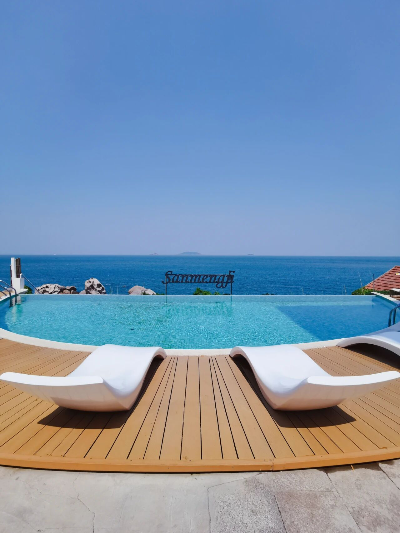 位于崂山风景区三梦季海边度假民宿院内,傲立于悬崖之畔,简约而不失格调的装修风格,粉白灰的色调交织出宁静与雅致,没有繁复的装饰,却处处透露着高级感。超大落地窗宛如天然画框,将浩瀚蔚蓝的海景、翻涌不息的浪花,与嶙峋奇特的礁石一一收纳,每一帧都是绝美的ins风大片,室外无边180°游泳池,湛蓝与天相接,美到极致~建议傍晚时分前来,点上一杯饮品,坐在室外礁石边的座椅上,邂逅绝美海上日落。