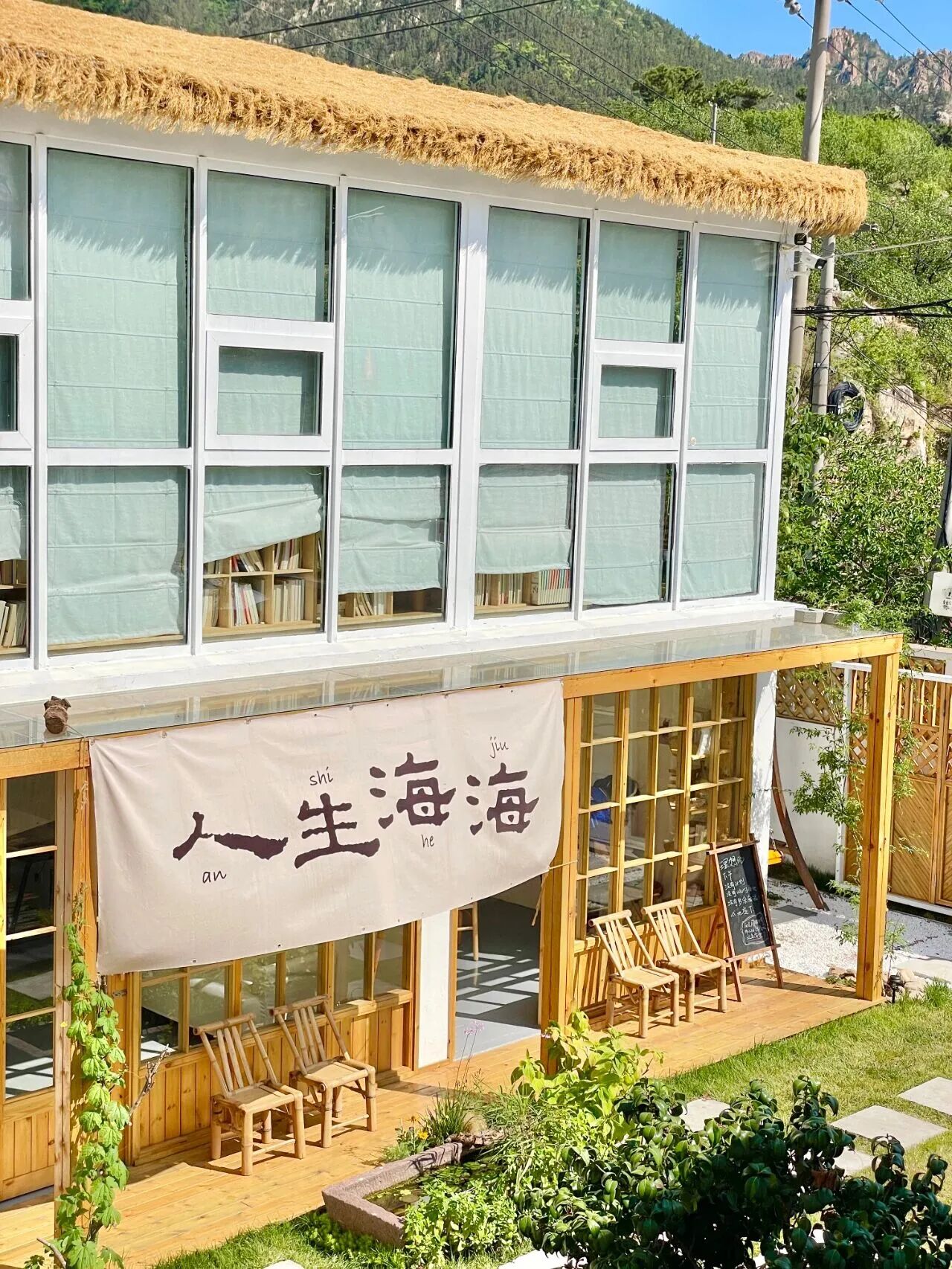 位于崂山风景区南九水大石头村,是图书馆也是咖啡馆,二楼是图书馆+咖啡,一楼有单独的茶室和阅读室,书籍仅供借阅不作售卖,正如大石乡村图书馆对读书的定义“真正的拥有一本书,是读过,不是买过”,透过宽敞的玻璃房放眼望去,满目绿意、 山舒水缓、沉浸式阅读氛围满格,书中字字珠玑的人间词话,散落在这一方山野院落中伴着山峦苍翠熠熠生辉。