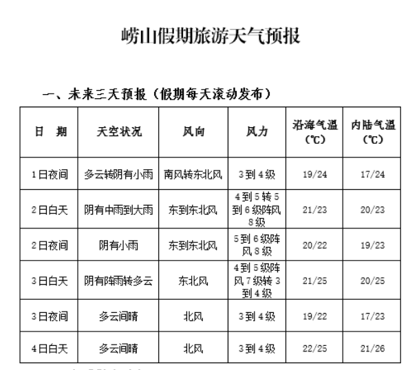 出行前可关注崂山天气,及时了解最新天气信息;