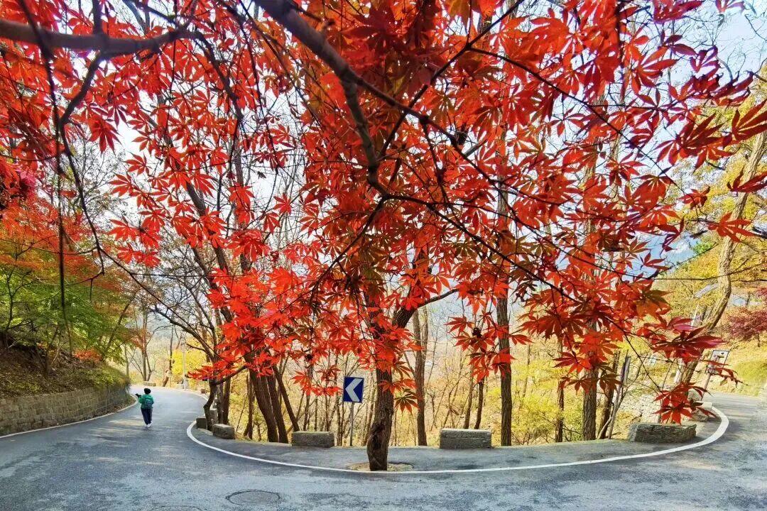 主要观赏点:登山路和华严寺(黄叶), 最佳观赏期11月上旬到11月中旬。