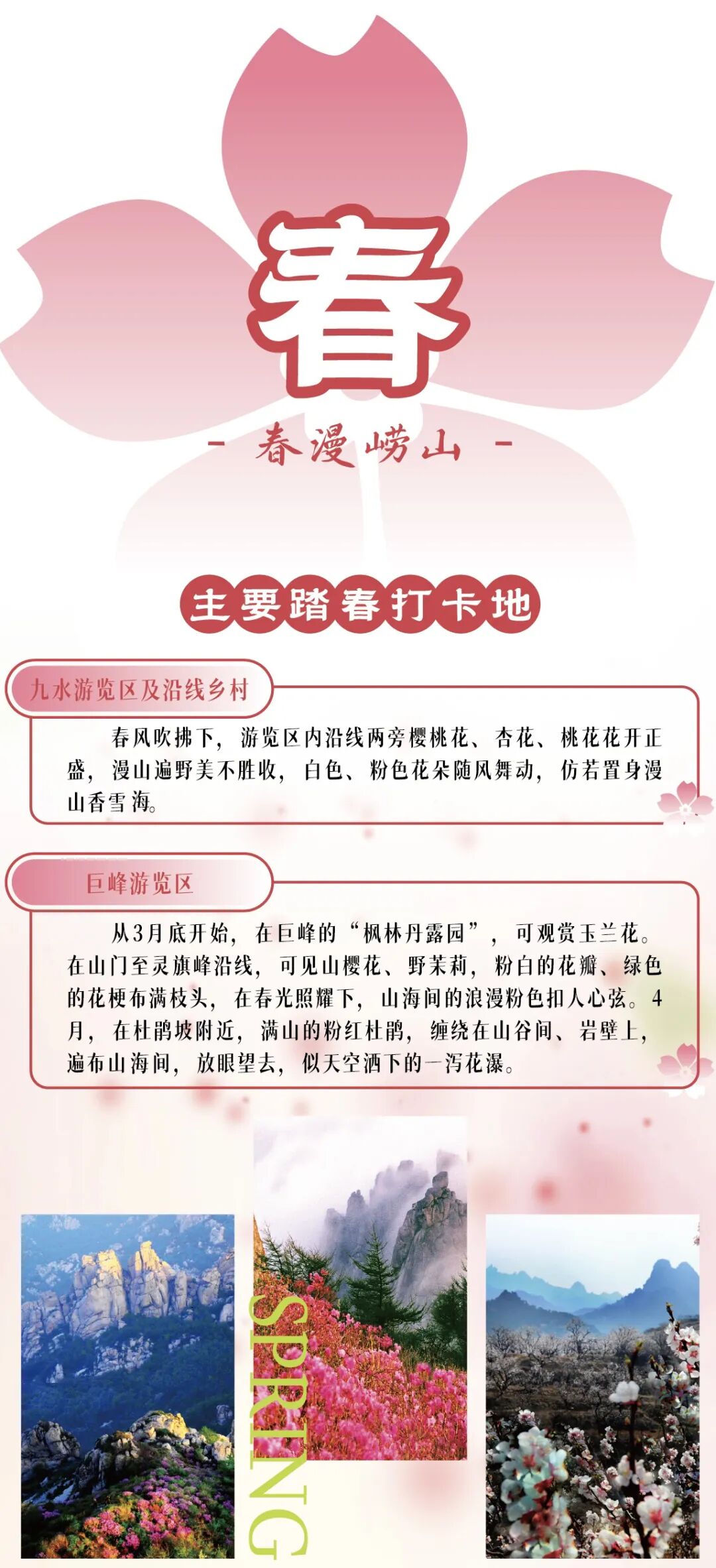 山海相依藏四季,一峰一涧皆风情,被誉为“海上名山第一”的崂山,将春的烂漫、夏的清凉、秋的斑斓、冬的温润藏于山海之间,四季游览宝藏线路已备好,快来奔赴这场全年不打烊的山海之约,四季的崂山,总能找到与你契合的打开方式。