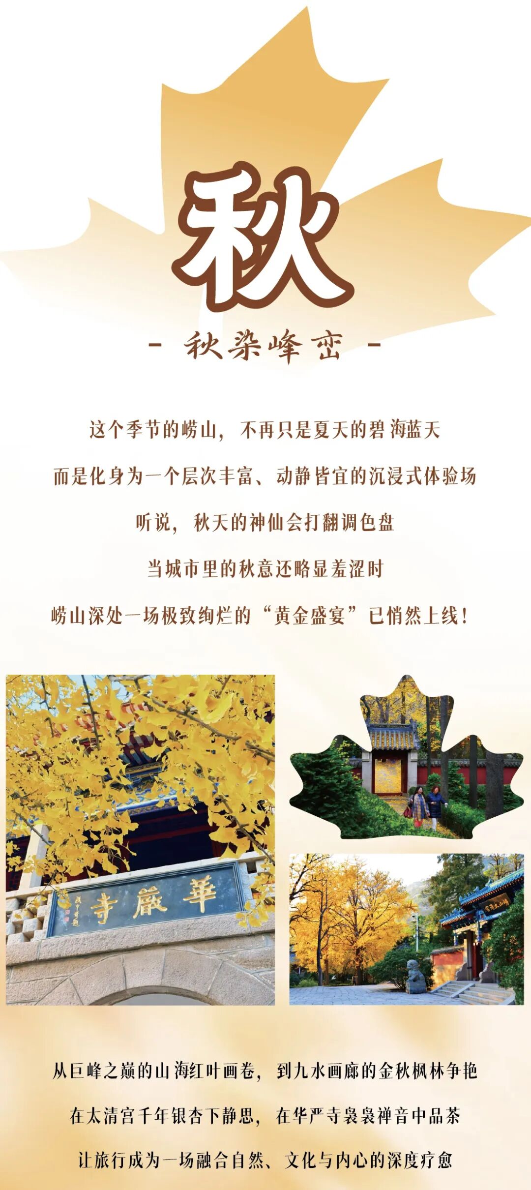 秋风一吹,崂山直接换上“五彩限定皮肤”!红叶、黄叶与山海撞色,层次感拉满像油画,解锁崂山赏秋全图鉴,枫叶似火,银杏鎏金,崂山成了大自然打翻的调色盘。