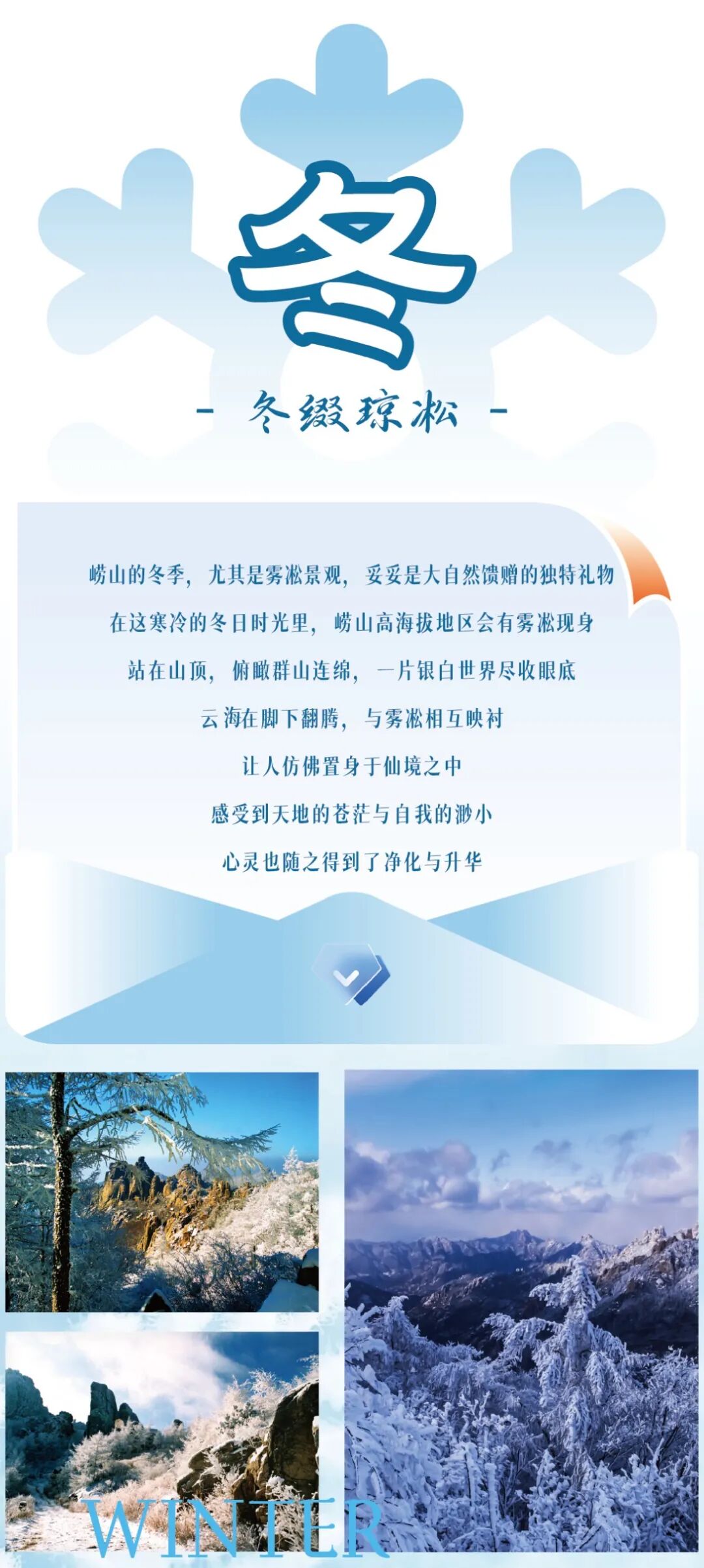 冬日崂山褪去喧嚣,藏着治愈系温暖!冰雪是它的高光时刻,每当雾凇出现巨峰便化身童话世界,松针与树枝被冰晶包裹,在阳光下晶莹剔透,九水的冰瀑堪称现实版“冰雪奇缘”。