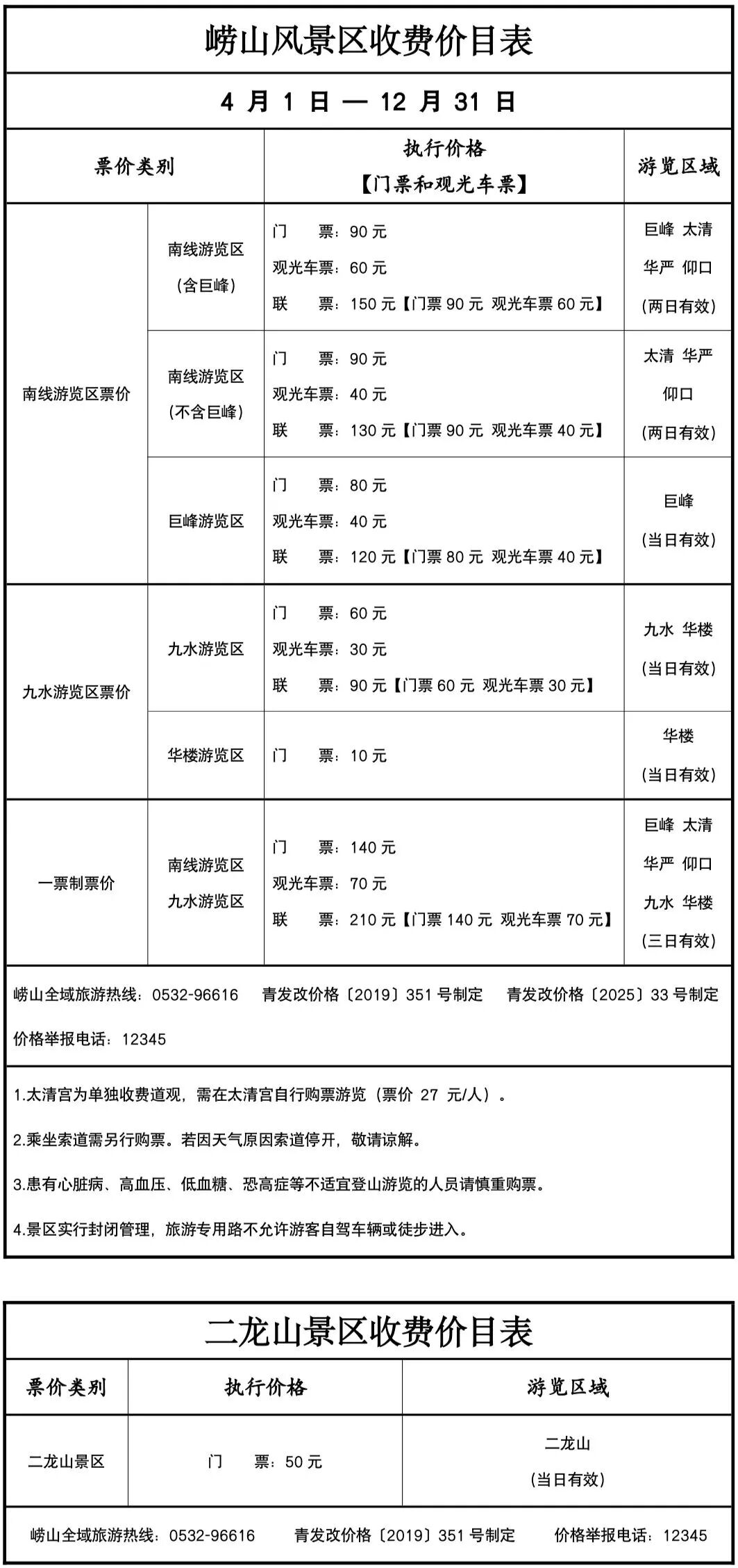 景区旅游服务热线:0532-96616。