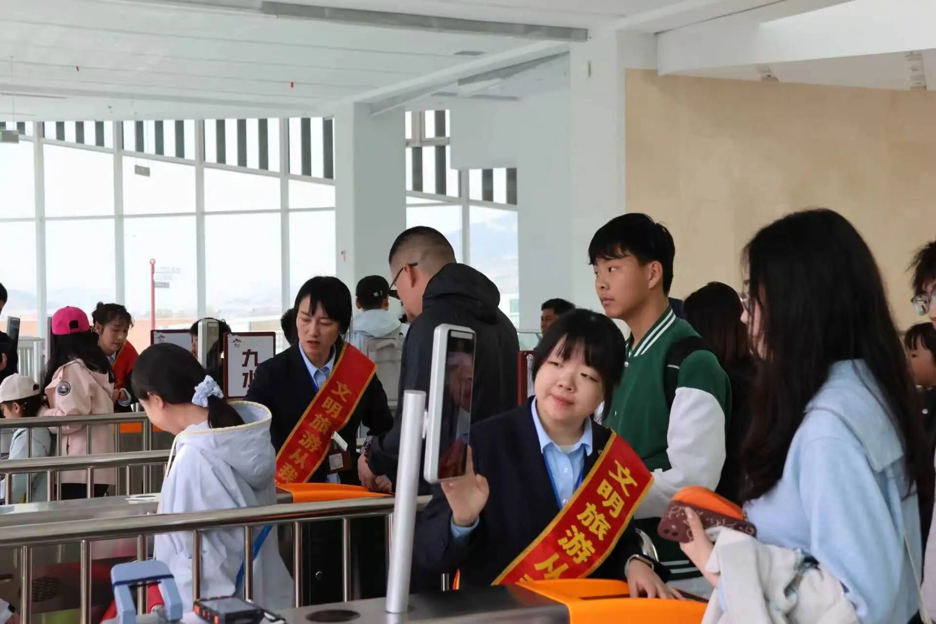 人潮虽旺,秩序井然。在工作人员的全力保障下,各游览区入口、观景平台、换乘站点等处,游客有序排队、文明游览。景区提前部署,增派工作人员、志愿者值守,在关键点位引导客流、解答咨询、维护秩序,实时监控各区域人流情况,及时疏导分流,确保每一位游客都能安全、舒心地享受春日旅程。游客王先生感慨道:“到处都有工作人员指引,问路、购票都很方便,玩得特别省心!”带孩子游玩的陈女士也表示,“工作人员都很有耐心,感受到了假期的热闹,也体会到了景区的用心,值得再来!”